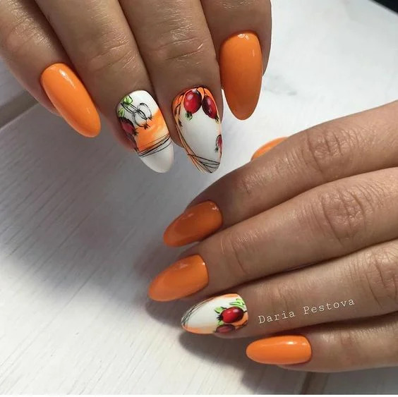 Осінь – пора збору врожаю. Тому в манікюрі також відбивається цей момент.