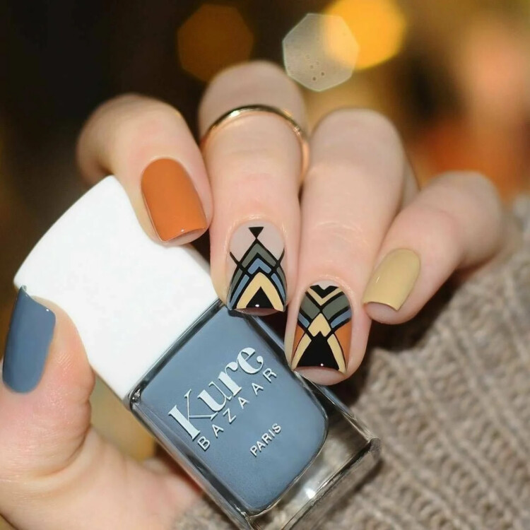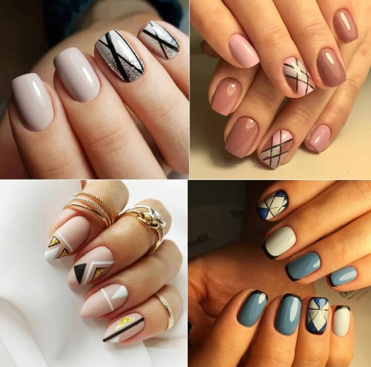 Як і раніше в тренді серед нейл-дизайнів залишається геометрія. Тут майстри також найчастіше вибирають приглушені і світлі пастельні відтінки лаків.