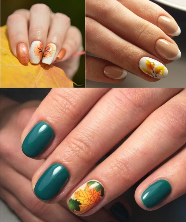 Їх краще нанести на 1-2 пальці на кожній руці. Тоді осінній манікюр буде виглядати вишукано, не перевантажено.