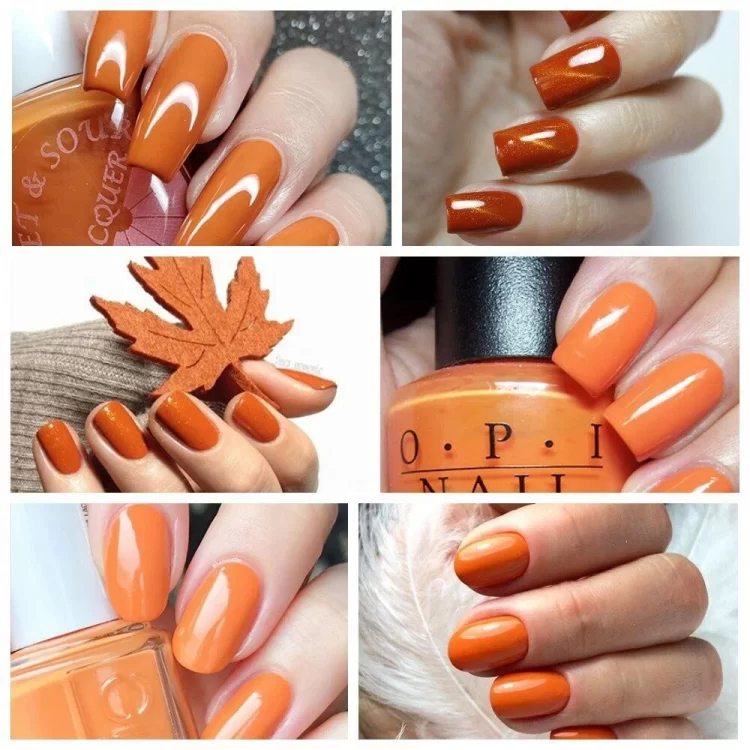 Восени хочеться сидіти з книжкою під теплим пледом або пити чай із пряним гарбузово-апельсиновим пирогом. А що, якщо зробити манікюр у теплих тонах помаранчевого? Такий підніме настрій навіть у похмуру погоду і «чіплятиме» погляди оточуючих: тепла та затишку зараз хочеться всім. Ви тільки подивіться, які відтінки! І головне вони всі різні!