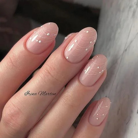 Дуже ніжно і стильно виглядає в нюдовому манікюрі дизайн “павутинка”.