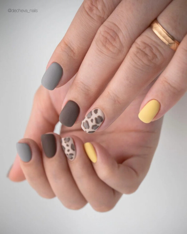 Наостанок модним леді ми радимо звернути увагу на пастельно-жовтий манікюр з принтом. Найцікавіше буде виглядати тваринний або квітковий мотиви. Однак на піку популярності також знаходиться клітина, геометрія, горошок і абстракція.