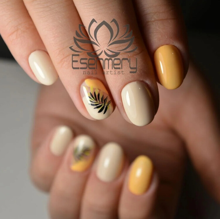 Пастельно-жовтий манікюр з принтом
