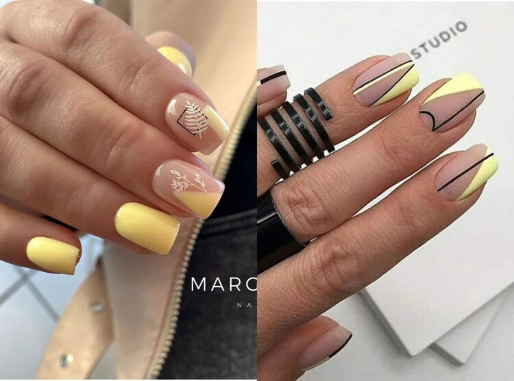 Пастельно-жовтий відтінок лаку можна використовувати тільки при оформленні френча. Причому не обов’язково класичного французького. Найбільшою популярністю в 2021 році буде користуватися френч-рамка, асиметричний, трикутний, а також абстрактний.