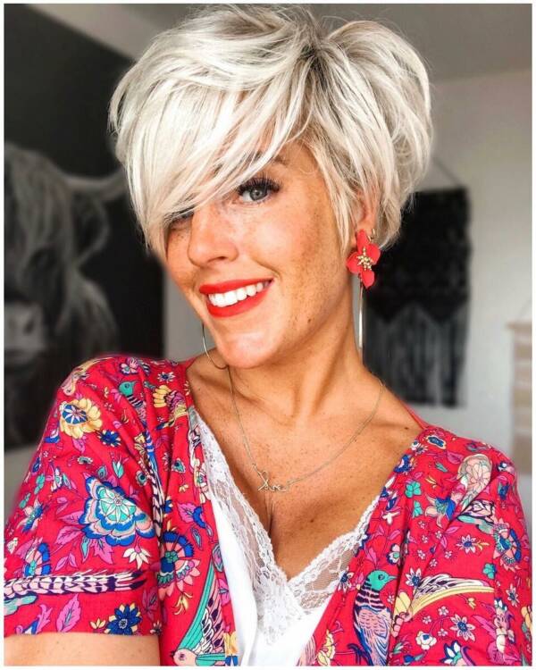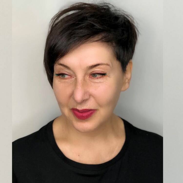 Як і попередній варіант, ця Пікс теж елегантна, але не так строга. Прекрасний варіант для тонкого і густого волосся: воно виглядає об’ємно і м’яко, а форма прекрасно коректує перші вікові зміни обличчя.