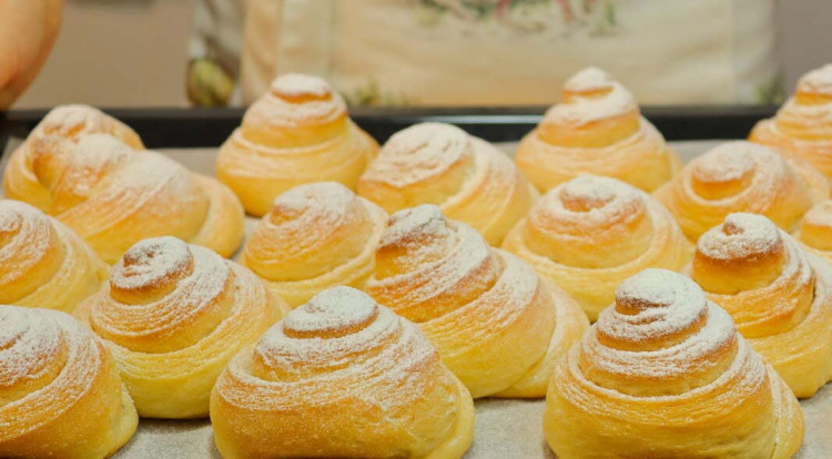 Булочки вийшли дуже м’які, невагомі, з хрумкою скоринкою і повітряні шаруваті всередині. Суцільна насолода розділяти їх на шматочки!