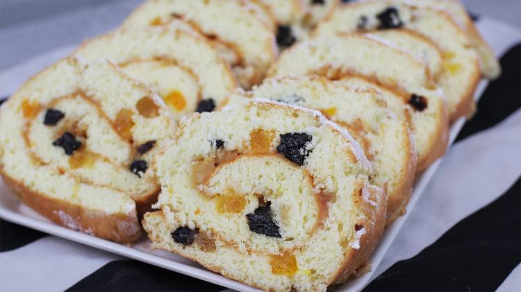Бісквітний рулет з яблуками і сухофруктами: