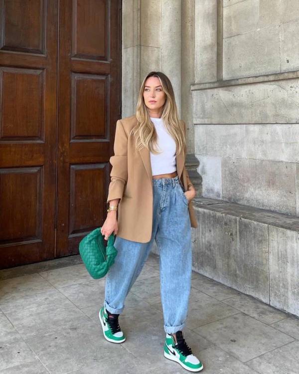 Джинси-банани відходять на другий план, то знову повертаються на модний п’єдестал. Вільні штани дозволяють приховати деякі вади фігури, а висока посадка вигідно позначає талію.