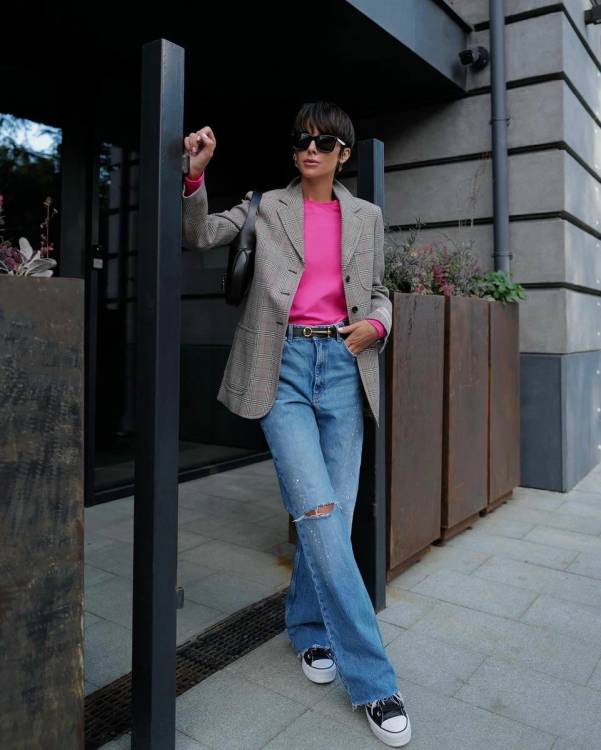 Джинси-кльош вже давно не асоціюються з ретростилем. Розкльошена модель – це красиво та практично, а ще цей фасон чудово моделює фігуру. Образи з джинсами-кльош завжди виходять стильними та небанальними.