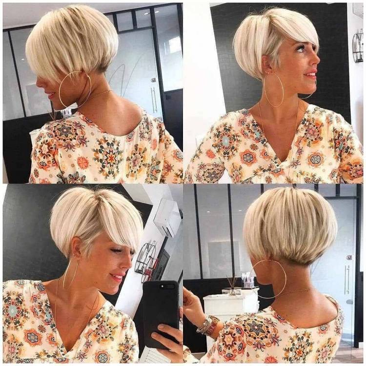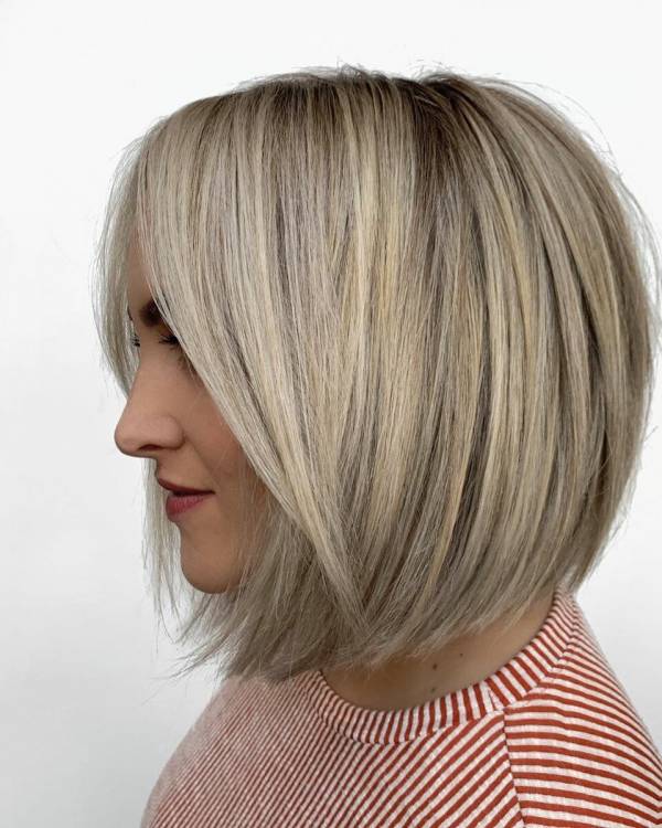 Власниці круглого і квадратного обличчя після 40-50 років за допомогою асиметричного чубчика і прямого бобу можуть значно омолодитися. Довжина передніх пасом повинна бути трохи довше підборіддя. Таким чином обличчя трохи подовжиться, а щоки і виражені вилиці будуть вигідно приховані. Об’ємна піднята потилиця посилить ефект.