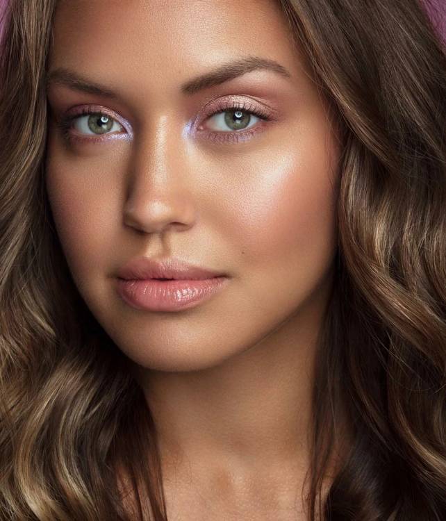 Дуже ефектно і стильно виглядає природний макіяж очей із блиском. Для цього макіяж використовують тільки хайлайтер, яким підкреслюють не тільки повіки, але і вилиці, носик і підборіддя. Яскравий макіяж підкреслить натуральну красу жінки.