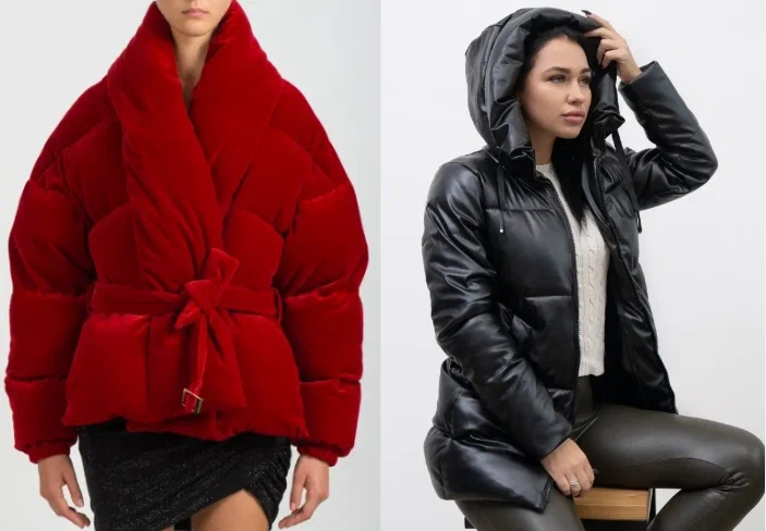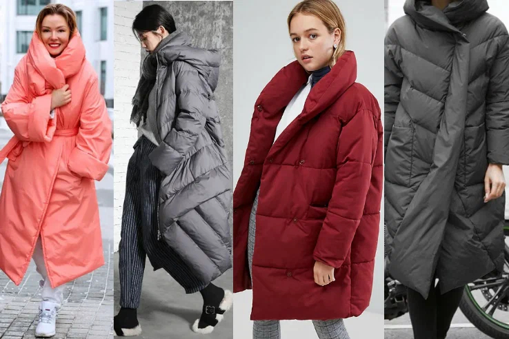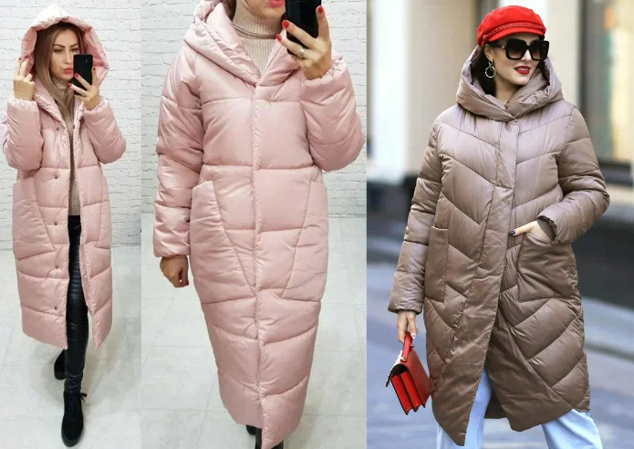 Пуховики а-ля гусениця з тонкими стьобаними елементами тепер теж не в моді, на зміну їм прийшли речі прямого крою з мінімальним дизайном, пуховики у формі кокона. Вони можуть мати стьобані елементи, але широкі, або з косим стібком.
