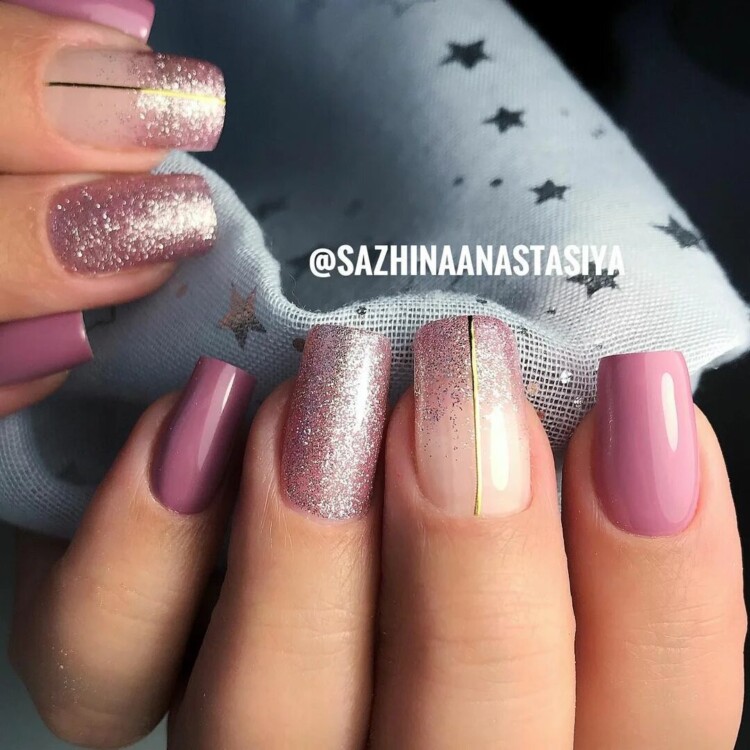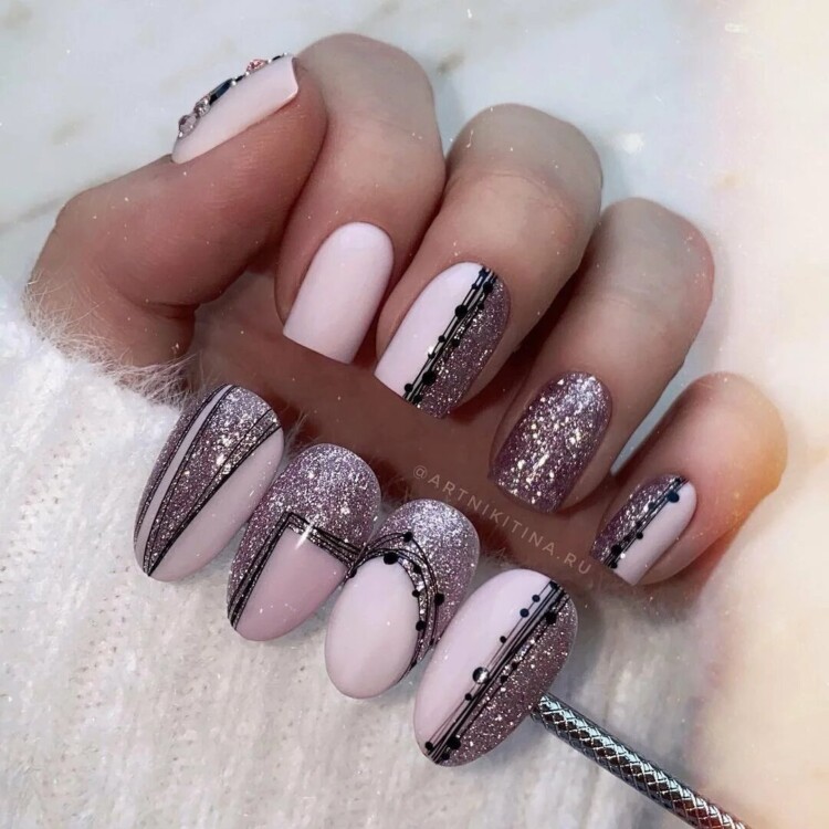 Прекрасною ідеєю для святкового новорічного манікюру вважається прикрасити його стразами, глітером або фольгою. У парі з яскравим рожевим покриттям будуть цікаво виглядати світлі тони декору, в той час, як з пастельним лаком можна використовувати і більш насичені прикраси у вигляді каменів або блискучих матеріалів.