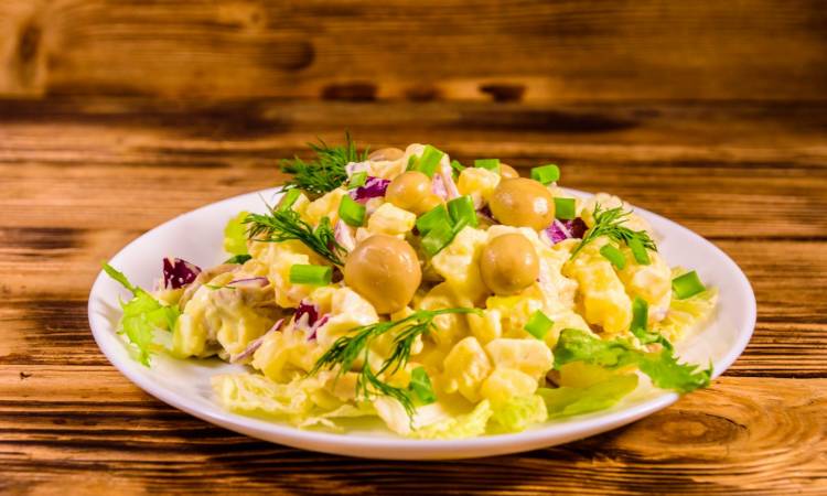 Салат з картоплі з білими грибами та червоною цибулею стане чудовою самостійною стравою на обід чи вечерю. Він дуже ситний, поживний та простий у приготуванні. Картопля та гриби – класичне поєднання. А якщо доповнити ці компоненти червоною цибулею, то вдасться привнести до страви пікантних ноток. Завдяки цибулі салат буде виглядати яскравіше і святково. Ця закуска готується нашвидкуруч. Головне, щоб під рукою були білі гриби! В ідеалі використовувати свіжі гриби, тому що вони відрізняються неймовірним ароматом та яскравим смаком. У зимовий період для приготування салату можна використовувати заморожені чи мариновані грибочки. В останньому випадку закуска вийде дуже вишуканою.