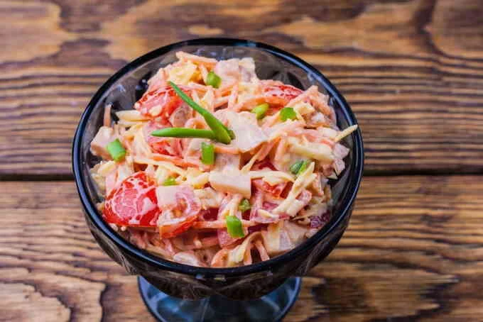 Салат з копченою куркою і корейською морквою