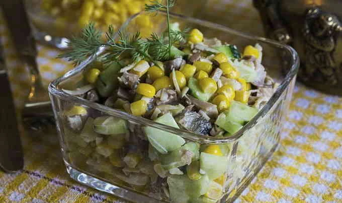 Салат з копченою куркою і кукурудзою на святковий стіл