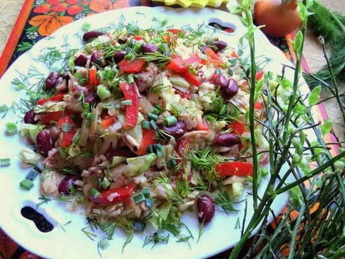 Швидкий салат з куркою та червоною консервованою квасолею