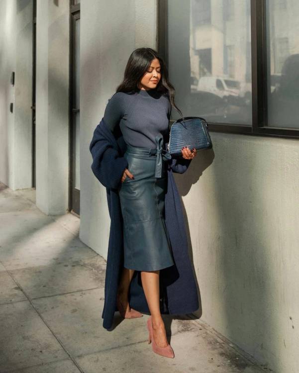 Для офісного гардеробу актуальні спідниці довжини міді. Фасони можуть бути різні: спідниці-олівець, трапецієподібні, пліссе, з асиметрією.