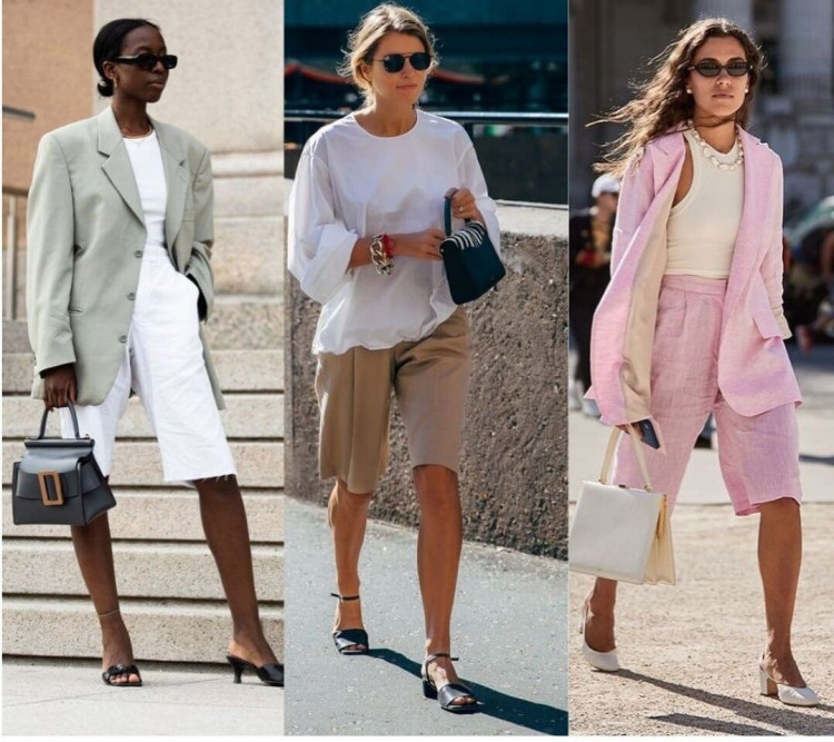 З неочевидного – шорти-бермуди. Вони зараз неймовірно актуальні, одна з найбільш трендових речей літа. Плюс в тому, що ви можете носити їх і на роботу, і в повсякденних образах, бермуди всюди впишуться ідеально. Оскільки це костюмні шорти брючного крою, то носіть їх так, як носили б звичайні офісні брюки. З тими ж блузками, сорочками, жакетами, що вже є у вас в арсеналі.