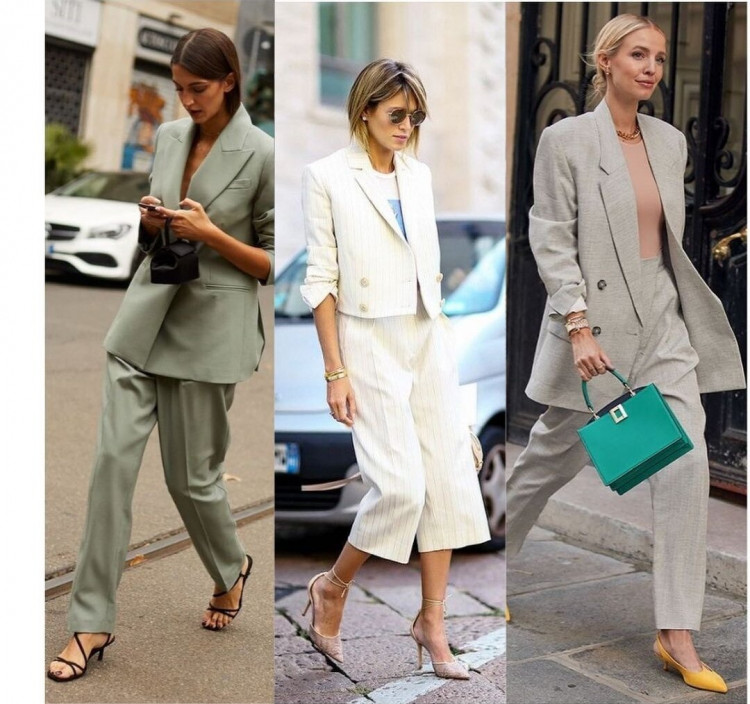 Обов’язковий атрибут ділового стилю в одязі – це, звичайно, костюм. Сьогодні актуальні костюми-двійки в самих різних комбінаціях: брючні, зі спідницями (міні та міді), з кюлотами, з шортами, з тими ж бермудами. Всі вони хороші тим, що дають величезну кількість сполучень і комплектів, адже елементи костюма можна носити не тільки разом, але і окремо в різних аутфітах.