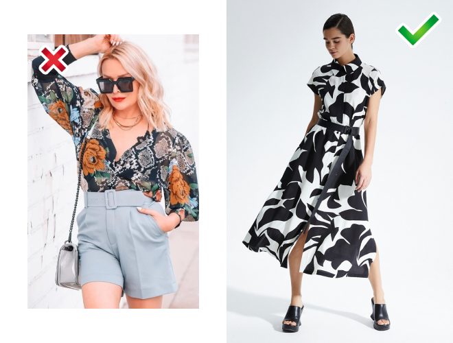 Квітковий принт – це чудово, але тільки не такий, як на фото зліва. Великі бутони, заміксовані з анімалістичним принтом, дуже складно стилізувати, та й виглядає це «ту мач».