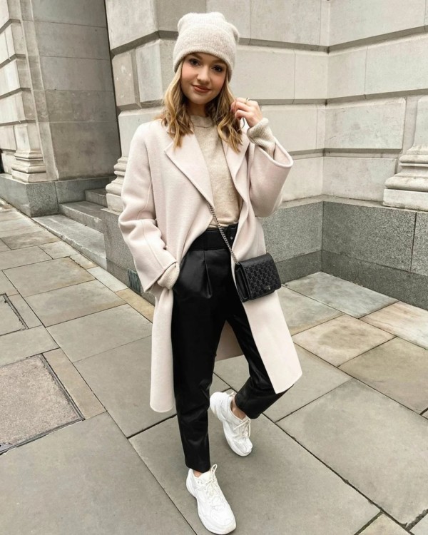 Чорні штани – самий базовий предмет жіночого гардеробу. До чорних штанів підходять яскраві, але обов’язково монохромні кросівки.