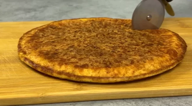 Виходить ось такий коржик, він смачний і в гарячому і в холодному вигляді. Сир зверху засмажується і виходить смачна і хрумка скоринка.