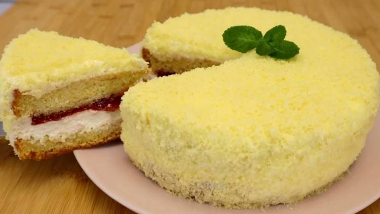 Посипаємо весь пиріг подрібненим коржем.