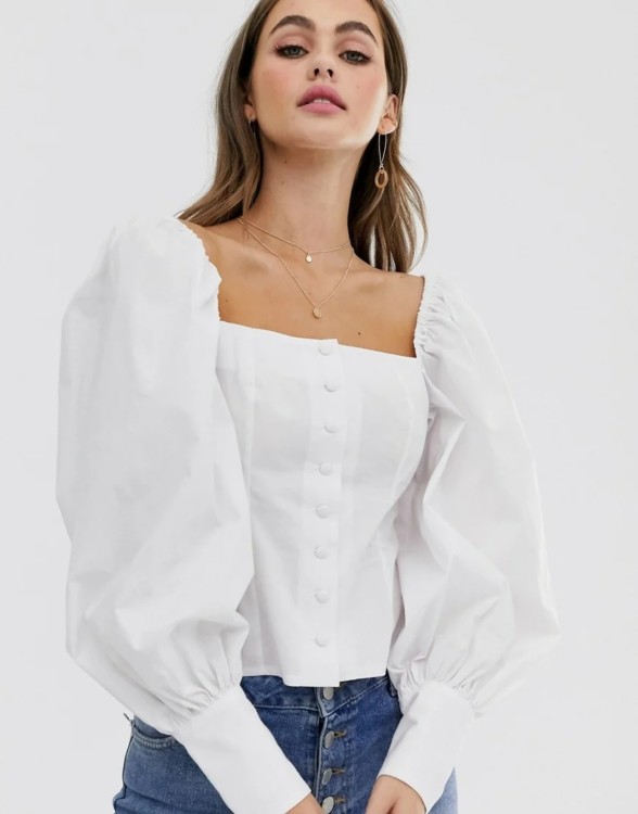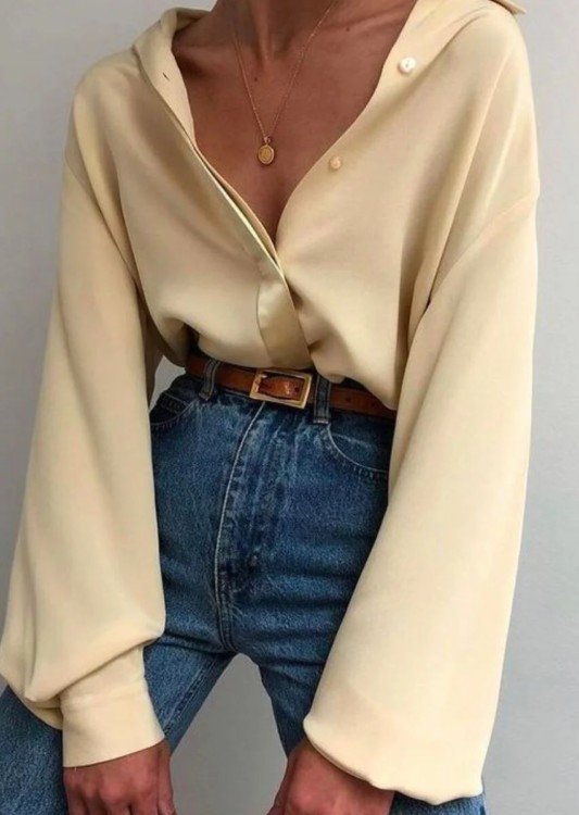 Вибираючи блузу з об’ємним рукавом 3/4 ви отримаєте додатковий акцент на зону талії. І це добре.