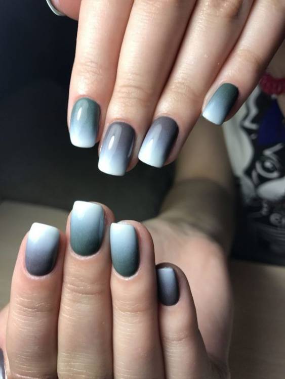 Градієнт з використанням різних відтінків сірого виглядає справді неймовірно. Такий дизайн точно ніхто не посміє назвати нудним. Щоб перехід виглядав стримано та при цьому ефектно, стилісти рекомендують використовувати близькі відтінки – білий та блакитний. Також можна звернути увагу і на ніжно-рожеву палітру, вона відмінно поєднується із сірим.
