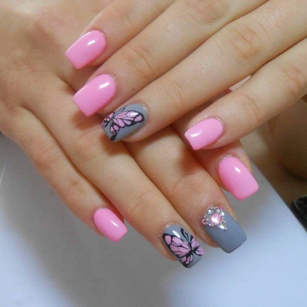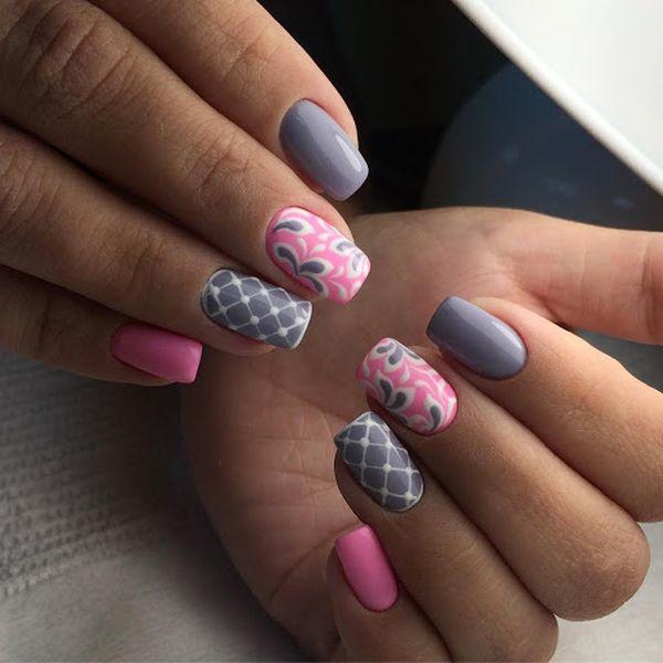 Майстри манікюрної справи запевняють, що сірий дуже добре поєднується із рожевим. Причому йдеться про будь-які відтінки. У результаті вийде гарний, оригінальний і навіть смачний нейл-арт. Також сіро-рожевий манікюр підійде тим, хто хоче, щоб їхні нігтики виглядали яскраво, але стримано.