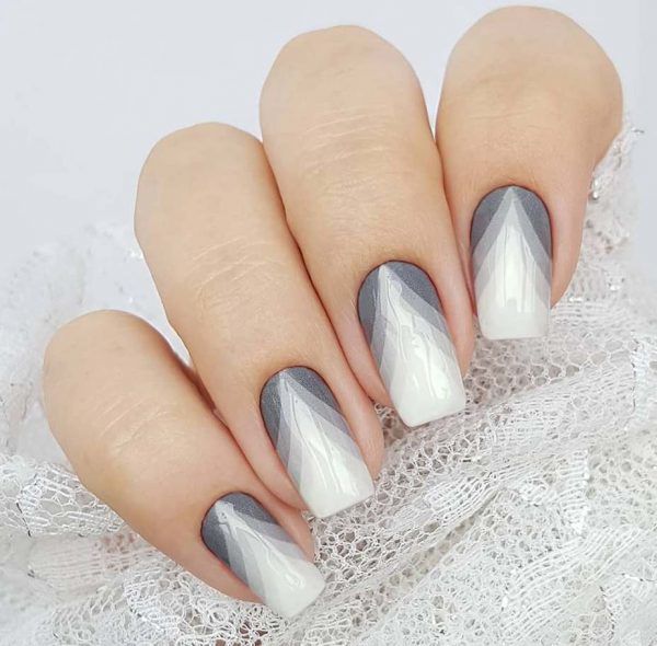 Якщо модниця хоче надати своєму нейл-арту ковток свіжого повітря, тоді їй слід використати поєднання сірого з білим. Особливо доречним такий варіант прикраси нігтиків буде у весняний період року.