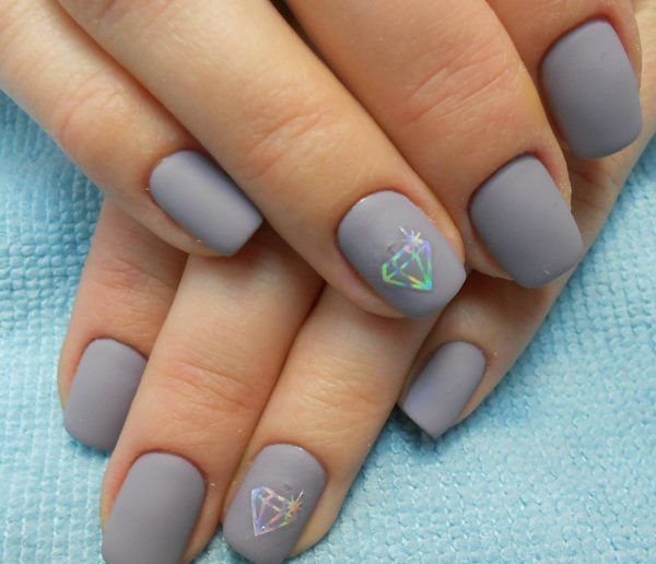 Модницям, які вирішили випробувати сірий манікюр, обов’язково слід придивитися до матового дизайну. Він виглядає нейомвірно. Як ви вже знаєте, манікюр у сірих тонах виглядає стримано і десь трохи холодно. Матовий топ дозволить зробити ваш нейл-арт більш теплим та затишним. До того ж, на світло-сірому матовому дизайні практично непомітні порошинки, а ще він має відмінну зносостійкість. Це означає, що красиві нігтики будуть довгий час радувати свою володарку.