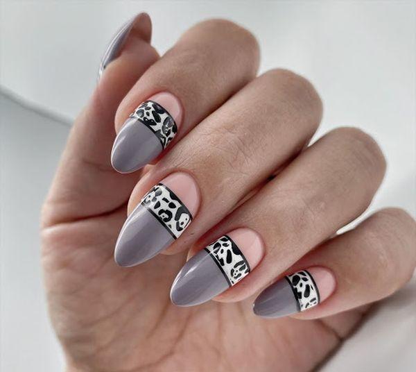 Відтінки сірого нерідко використовують як більш цікаву та привабливу альтернативу чорному кольору. Ця тенденція дає можливість такому нейл-арту залишатися на піку популярності протягом усього року. Єдине, що можна підкоригувати – відтінок і дизайн.