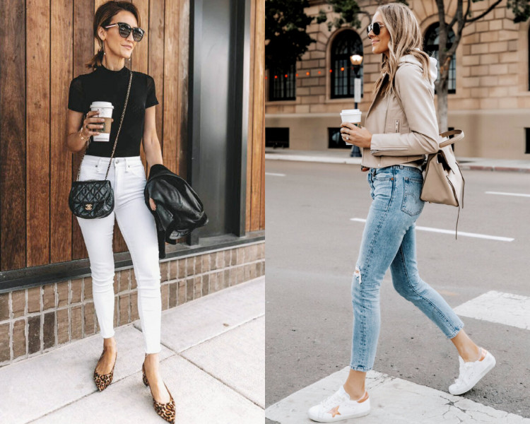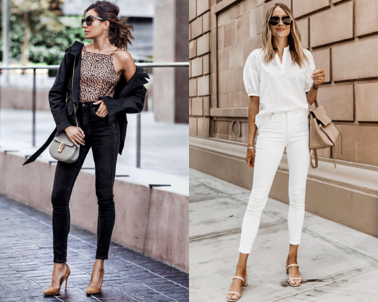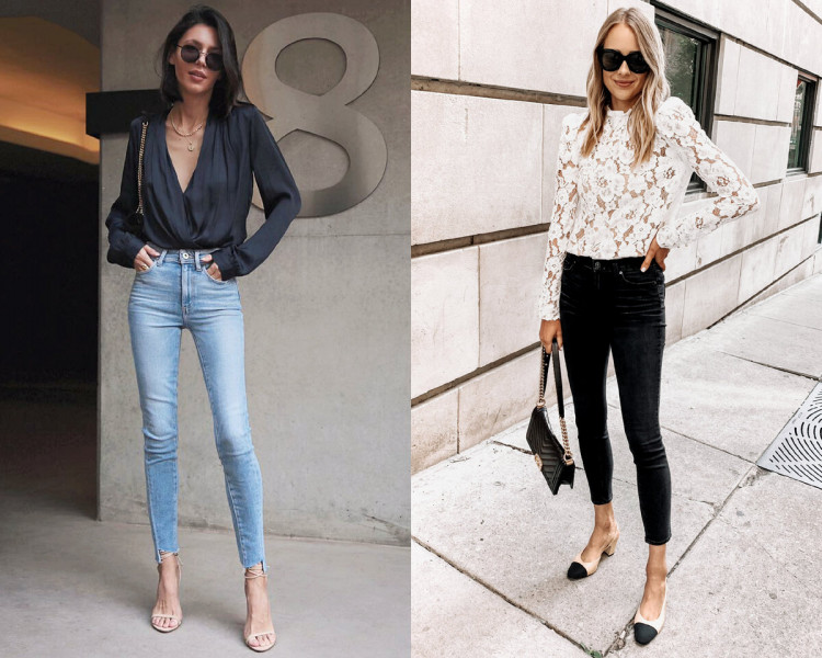 На відміну від широких моделей джинсів, скінні чудово вписуються в ділові аутфіти, гармонійно виглядають в тандемі з сорочками і блузками. Скінні можна надіти в парі з романтичним атласним топом і завершити ансамбль за допомогою елегантного жакета – просто, але неймовірно стильно!
