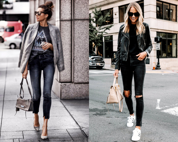 Скінні в синіх, чорних і сірих відтінках – це теж відмінний вибір як на літній сезон, так і на холодну пору року для образів з усіма видами «верху». Доповніть джинси скінні стриманою футболкою або шкіряною курткою, і ви будете чарівні.