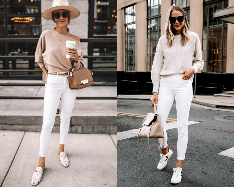 Не бійтеся пробувати щось нове і цікаве, наприклад, модні в 2021 році обтислі джинси з білого деніму. Створений образ з джинсами скінні світлого відтінку виглядає дуже свіжо, жіночно і витончено. Джинси білого кольору добре поєднуються з футболками будь-якого відтінку, толстовками, контрастними сорочками, босоніжками і взуттям в спортивному стилі.