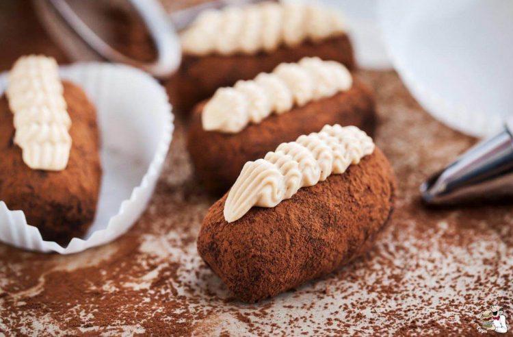 Печиво подрібнити до крихти. Додати до нього какао, м’яке вершкове масло, варене згущене молоко. Перемішати та сформувати пиріжне. Прикрасити та поставити на 2 години в холодильник.