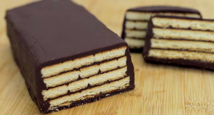 Знову викладаємо печиво, поливаємо шоколадом, розрівнюємо. Робимо так ще двічі.