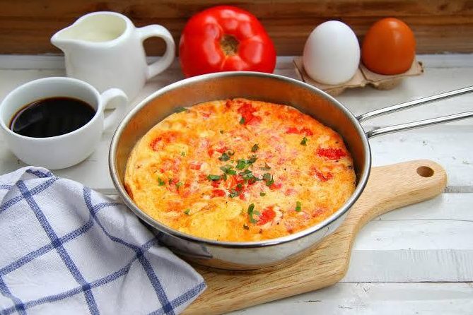 Омлет з ковбасою, помідорами та сиром, запечений у духовці, — це ситна та швидка страва, ідеальна для сніданку або легкої вечері. Завдяки поєднанню ковбаси, свіжих овочів і сиру, омлет виходить особливо смачним та ароматним. Він зручний у приготуванні та дозволяє експериментувати з інгредієнтами, додаючи улюблені продукти.