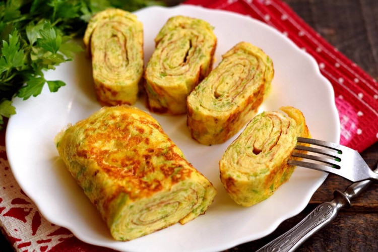 Якщо у вас є один кабачок і чотири яйця, то з цього невеликого набору продуктів можна приготувати смачне оригінальне блюдо – багатошаровий рулет. Складається рулет з тонких листів, смажених на сковороді. Рецепт досить цікавий, а рулет виходить дуже м’яким і соковитим, підійде в якості закуски до інших страв.