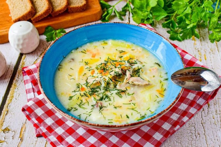 Сирний суп з куркою – це ароматна і смачна страва, яка чудово підходить для обіду або вечері. Завдяки ніжному плавленому сиру, суп виходить надзвичайно кремовим і надає страві особливої м’якості. Куряче м’ясо додає ситності, а овочі — легкості та свіжості. Цей суп чудово поєднує у собі простоту приготування та вишуканий смак, який оцінять усі члени вашої родини.