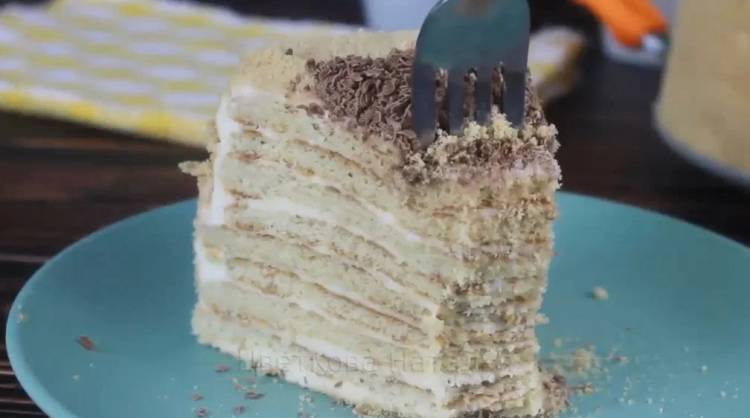Готувати його одне задоволення – жодної духовки не потрібно. Просто замішуємо тісто, випікаємо коржі на сковороді та збираємо смачний десерт! Торт виходить досить великим і ситним.