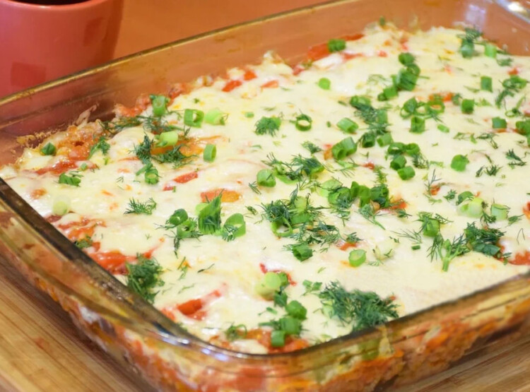 10. Наша запіканка готова, вона вийшла дуже соковитою і ароматною. Посипаємо зверху зеленню і подаємо до столу. Обов’язково спробуйте приготувати за цим рецептом!