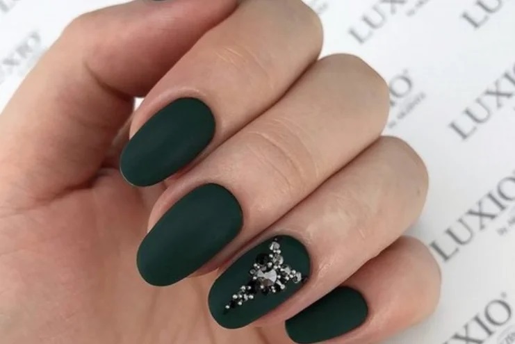 Такі елементи вже давно стали обов’язковим атрибутом будь-якого манікюру, тому майстри можуть застосовувати їх і на зелених нігтях. Такий декор виглядає особливо стильно і оригінально.