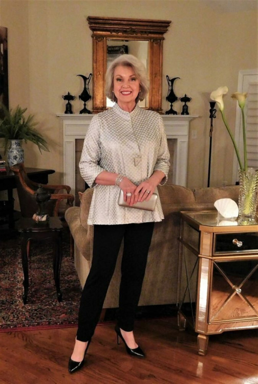 У віці 50+ вітається використання яскравих акцентів в образі. Це може бути кольорова накидка або яскравий компактний клатч. Відмовтеся від одягу формату оверсайз, вибирайте речі за розміром, які дозволять вигідно піднести свою фігуру.