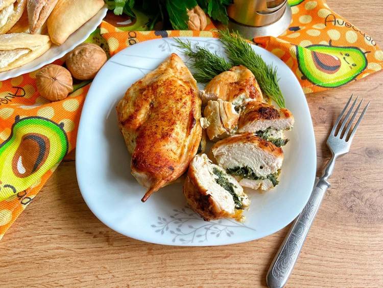 Смачна і дуже гарна куряча грудка – чудова страва, яку можна подати на святкову вечерю у родинному колі. Готування не забере багато часу, адже курятина завжди дуже швидко готується. Що стосується гарніру, то найкраще сюди підійде легкий овочевий салат або просто відварений рис.