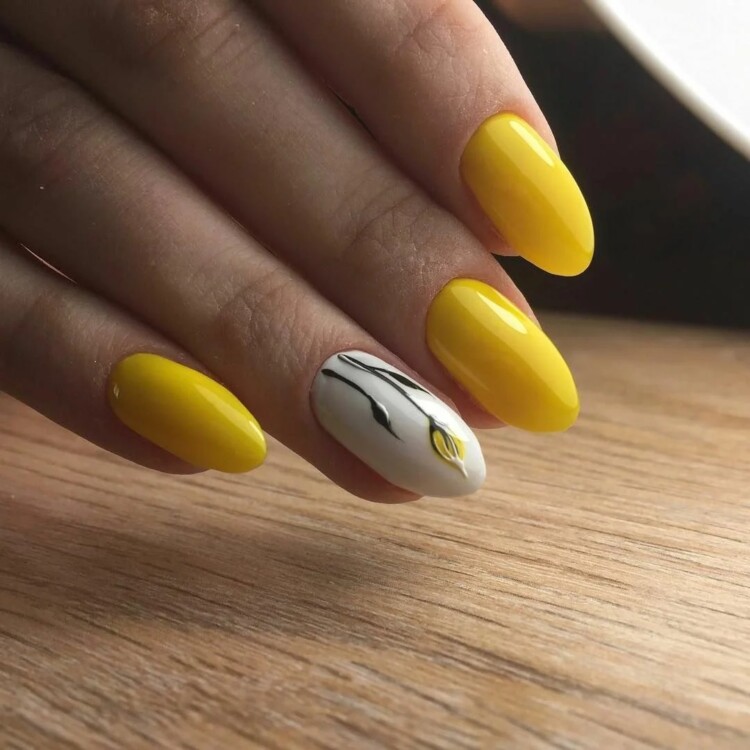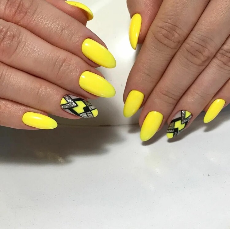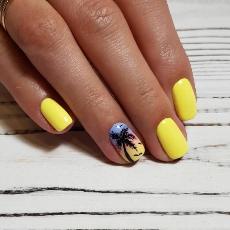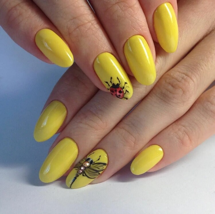 Жоден літній манікюр не обійдеться без життєрадісного жовтого відтінку. Комбінувати його можна з будь-яким декором. Також жовтий колір можна розбавити іншими більш нейтральними відтінками. Головне, знайти “золоту середину” і порадувати себе закінченим образом.