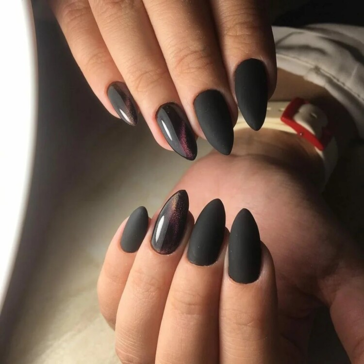 Однотонне покриття із застосуванням авангарду на одному або декількох нігтиках виглядатиме бездоганно. Варто скористатися такою ідеєю.