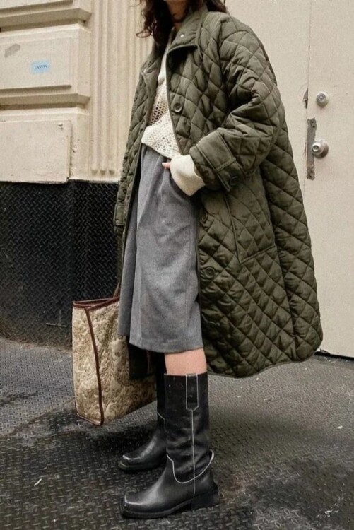 Актуальне стьобане пальто максі довжини виграшно поєднується, як з масивними черевиками на грубій підошві, так і жіночними гостроносими ботильйонами на високих підборах. Романтичний, кежуал, строгий, а також класичний стиль в одязі виграшно «подружиться» з даним «зігріваючим» трендом.